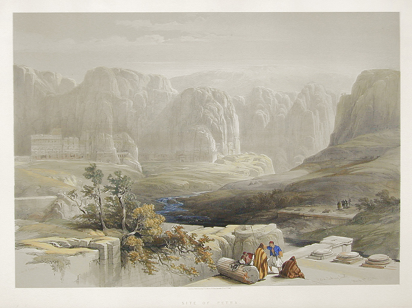 Comments: A fine full folio view of the Petra Valley, showing the ruins in the surrounding cliffs.